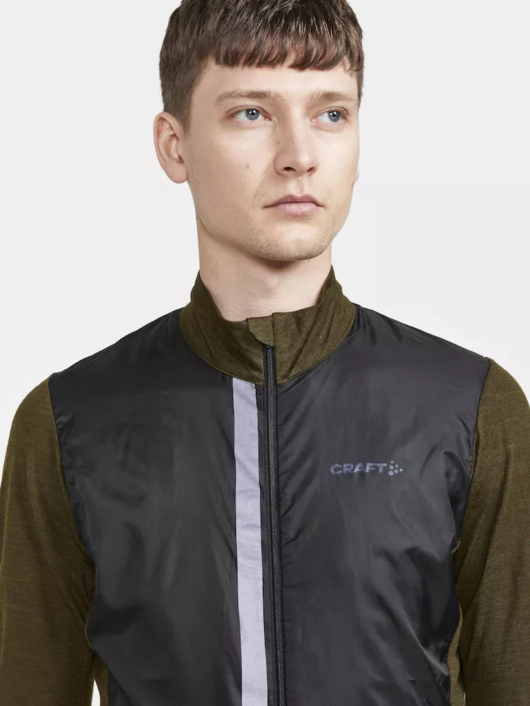 Varm cykeljakke med merinould kombineret med vindtæt ripstop stof ved bryst og skulder.