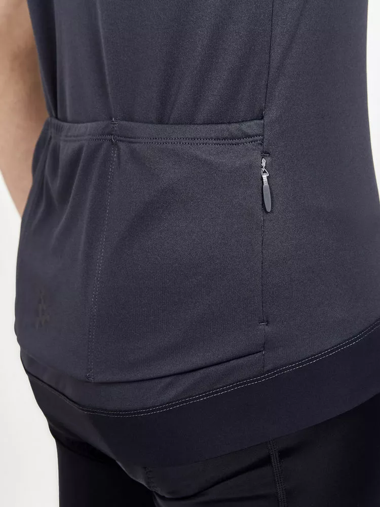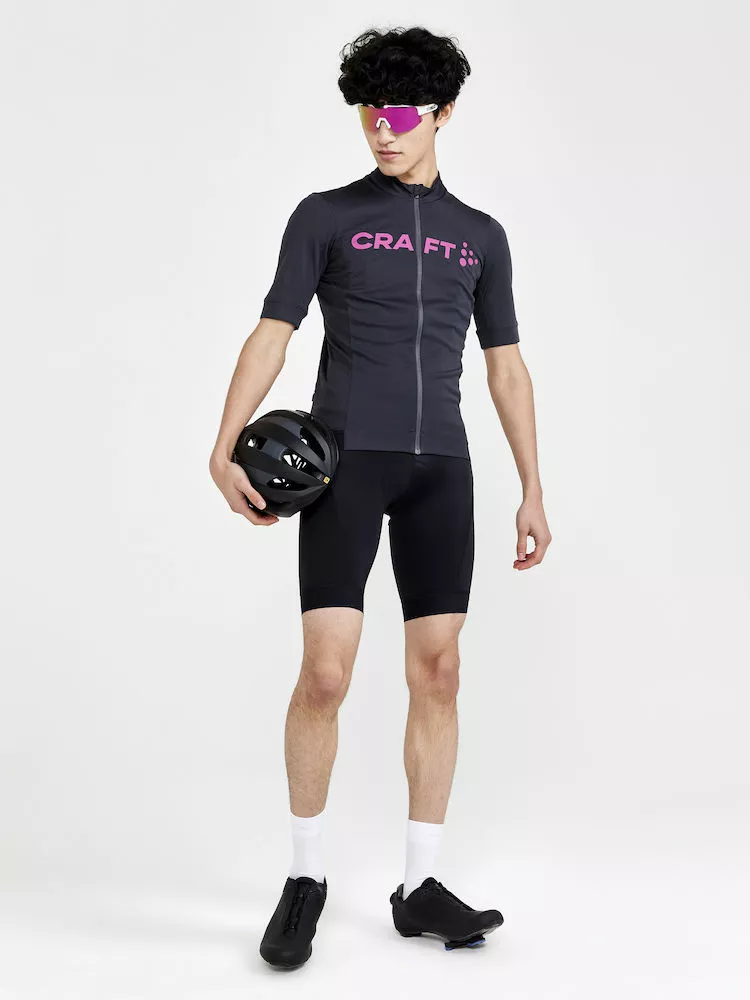 Craft Essence cykeltrøje i blødt og strækbart materiale. Cykeltrøjen er meget åndbar, og er lavet så den transporterer sved væk fra kroppen. Logoerne er lavet med refleksmateriale, så du er synlig selvom turen foregår en sen sommeraften. Bunden har silicone, som sørger for at holde trøjen på plads. Der er 4 ryglommer hvor den ene er med lynlås, så nøgler og andet er sikret på turen.Trøjen har: