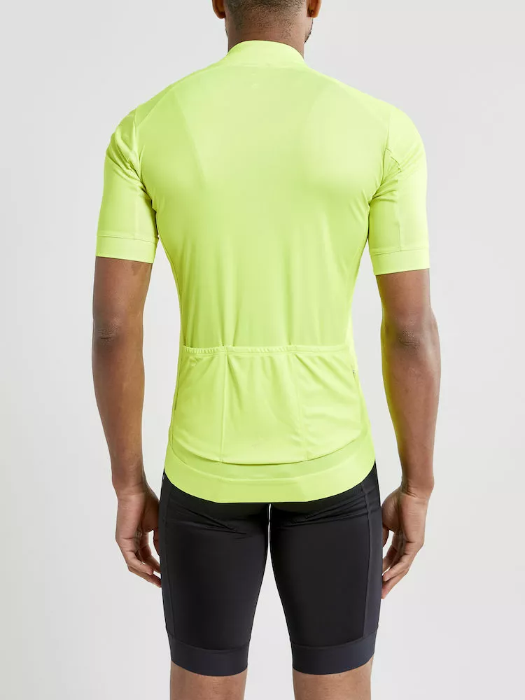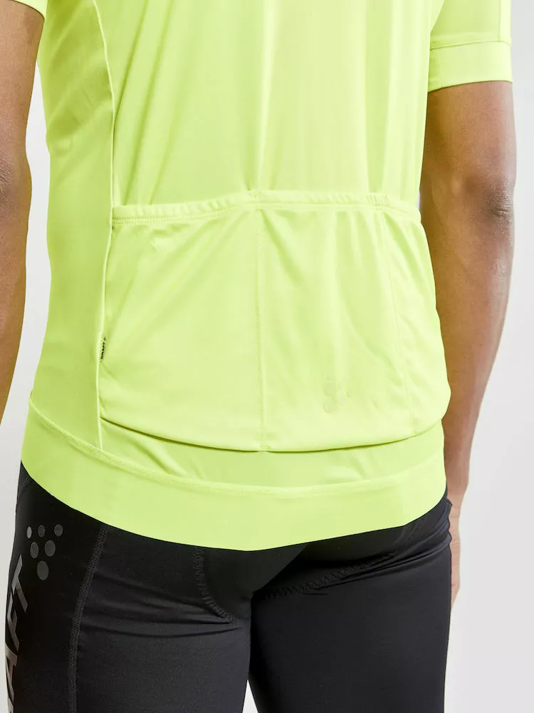Craft Essence cykeltrøje i blødt og strækbart materiale. Cykeltrøjen er meget åndbar, og er lavet så den transporterer sved væk fra kroppen. Logoerne er lavet med refleksmateriale, så du er synlig selvom turen foregår en sen sommeraften. Bunden har silicone, som sørger for at holde trøjen på plads. Der er 4 ryglommer hvor den ene er med lynlås, så nøgler og andet er sikret på turen.