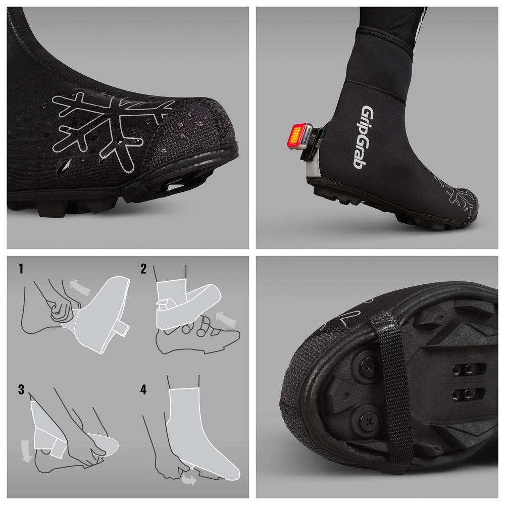 I bunden har GripGrab lavet deres “Intelliseal”. Det hjælper med at holde overtrækkene helt tæt til skoene, så de bedre holder dine fødder tørre og varme, og det giver også overtrækkene en længere levetid.