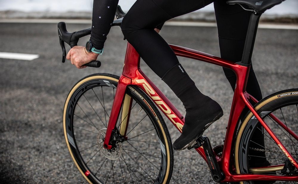 Tætsiddende pasform der tilpasser sig skoen, egnet til landevejscykling.