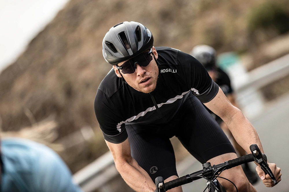 Kortærmet Rogelli jersey i Race Fit. Modellen er lavet i Dynatherm Flex, der giver en fleksibel cykeltrøje, der holder på lidt på varmen og har 4-vejs stræk. Course har tre baglommer og en ekstra baglomme med lynlås. Der er silikonestrip i bunden, der giver hold på trøjen under kørslen.