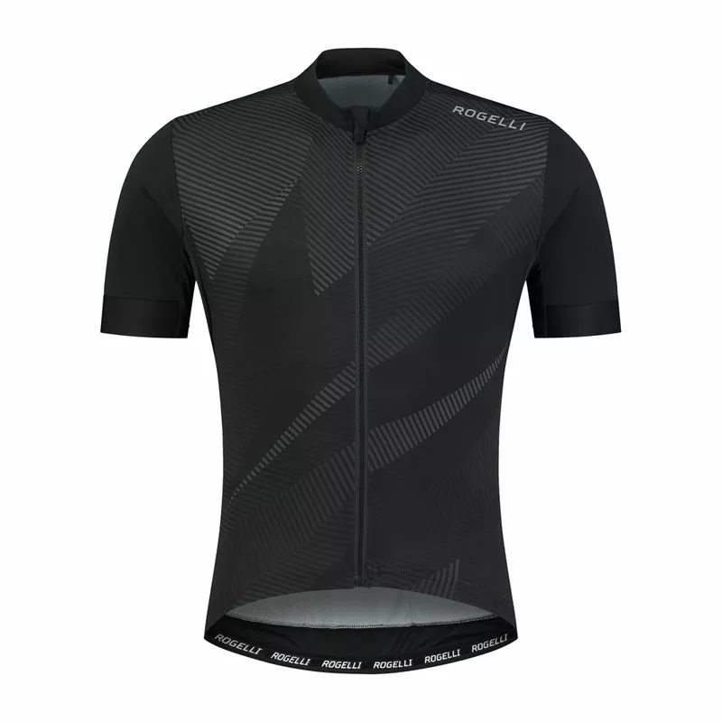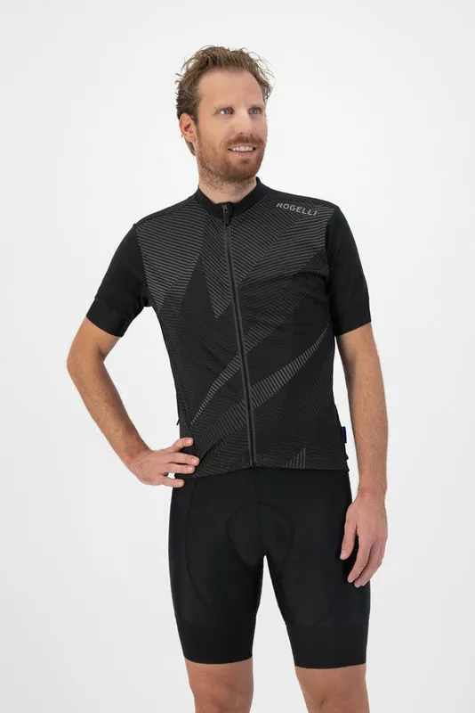 Rogelli cykeltrøje i Race Fit! Cykeltrøjen er med korte ærmer og i det åndbare Dynacool, der giver en åndbar og fleksibel tur. Der er en lang lynlås med autoblock, der giver en vindtæt cykeltrøje. Der er tre ryglommer og en ekstra lomme med lynlås. Der er silikonestrip i bunden af trøjen, så den ikke glider op under kørslen.