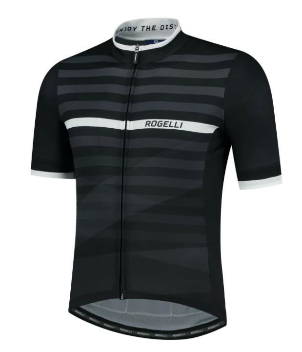 Rogelli jersey i Race Fit. Trøjen er lavet i Sensor stof. Det er kendt for at være let, åndbart og hurtigttørrende. Dertil giver det også optimal UV-beskyttelse. Denne model har en skjult lynlås, 3 baglommer og elastik i ærmerne. Dertil er der også silikonestrip i bunden, så trøjen sidder hvor den skal.