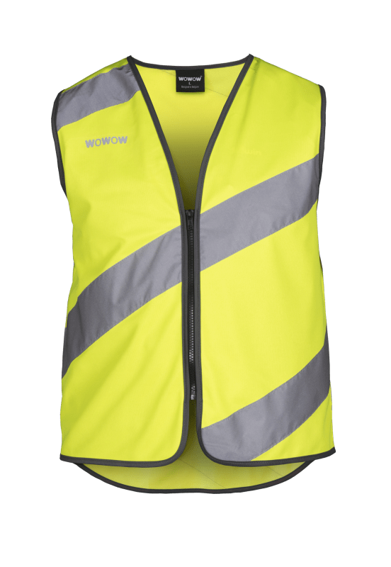Wowow roadie er en refleksvest i gul med store refleksbånd.